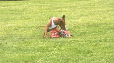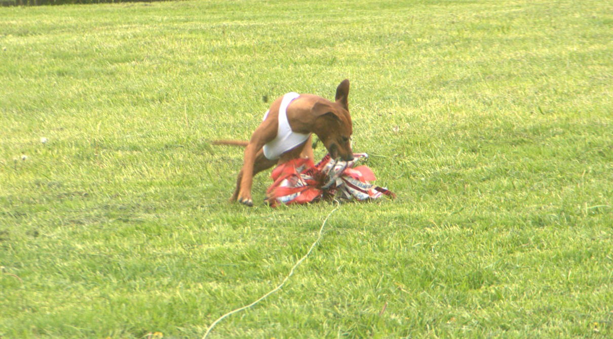 Esta actividad simula la persecución de una liebre mediante un señuelo artificial que se desplaza por un recorrido diseñado específicamente para el perro. De este modo, el perro puede expresar comportamientos naturales de persecución y seguimiento sin la presencia de una presa real, en un entorno controlado y respetuoso.