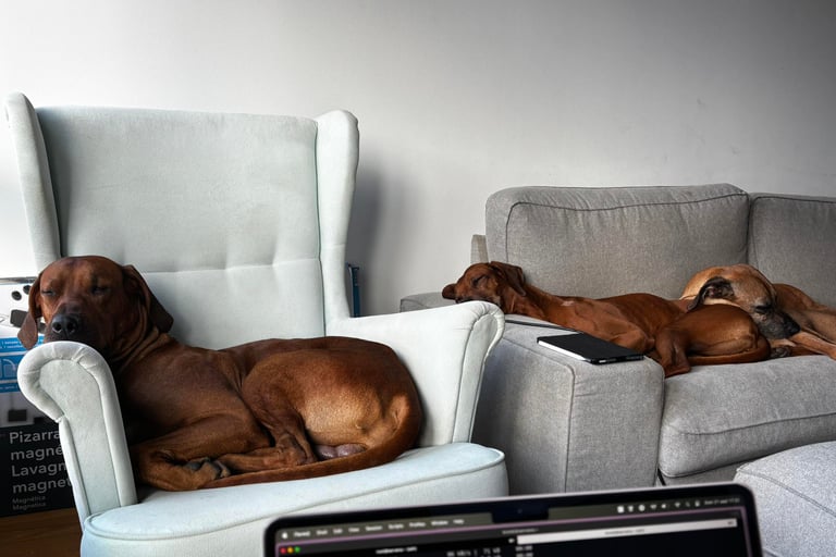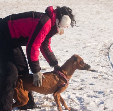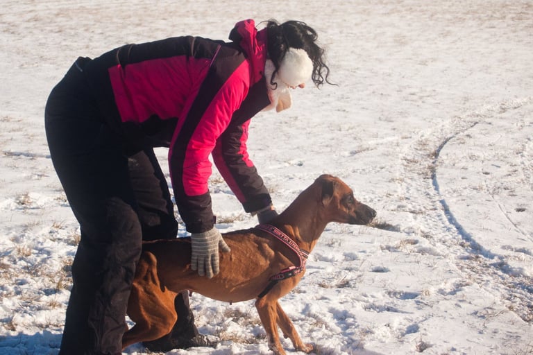 Me llamo Valentina y vivo en La Coruña. Convivo con cuatro Ridgeback y fue con ellos como empecé a practicar mantrailing y lure coursing hace ya más de diez años, en la República Checa. Allí descubrí el mantrailing y comprendí el enorme valor que tiene como actividad para muchos perros, de cualquier edad, no solo por el trabajo de búsqueda, sino por el bienestar y la satisfacción que les aporta.